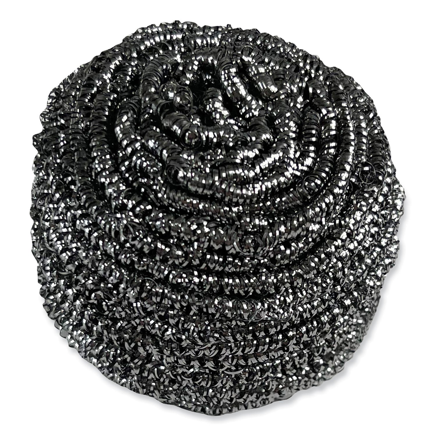 Boardwalk® Stainless Steel Scrubbers for rough cleaning chores such as pots, pans, grills, and ovens. Great for heavy-duty cleaning jobs with grease and grime. Durable and strong, scrubbers won't rust or splinter. The tough pads can also be used to remove floor scuff marks and other tough to remove, stubborn stains. Individually poly-wrapped for maximum cleanliness. Great for industrial use and cleaning high-traffic areas. Scouring Pads/Sticks Type: Pad; Material(s): Stainless Steel; Size (W x L): 3.93" x 1.96"; Color(s): Silver.