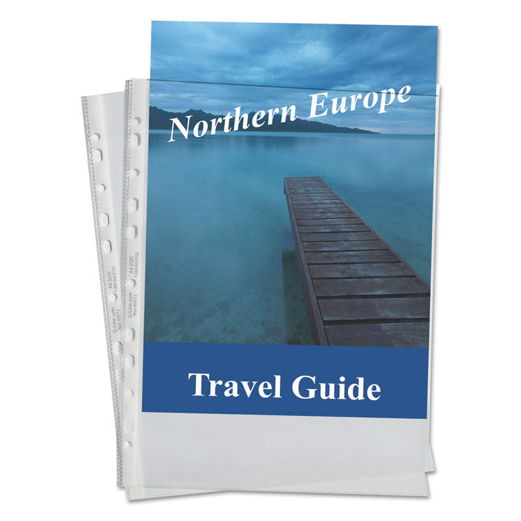 Sheet protectors are widely used as a tool to keep documents in their original condition. Once inserted into the holder, the documents instantly have a plastic, protective cover, which will help eliminate damage and tearing while they are being stored. No sheet punching necessary, keeping documents in original condition. Top loading sheet protectors provides permanent storage for your materials. Standard weight polypropylene provides durable storage for documents that are A4 in size. Seven-hole punched. Acid-free material eliminates photocopy transfer. Load Orientation: Top; Sheet Capacity: 2; Sheet Protector Type: Ring Binder; Insert Size: 8.25 x 11.75.