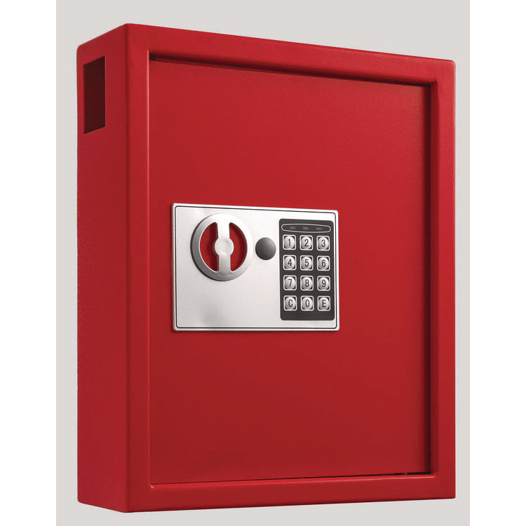 Enjoy the protection and convenience of accessing your keys through a dependable electronical lock and forget the trouble of making multiple keys. A secure solution to organize your keys in a heavy-duty steel box, easy to operate as it opens with a secret pin code that can be changed infinitely. In addition, two extra override keys are included. It is also equipped with a buzzer and LED lights in order to provide the user with the necessary feedback about each operation and power status. Key Capacity: 40; Material(s): Stainless Steel 304; Color(s): Red; Width: 13".