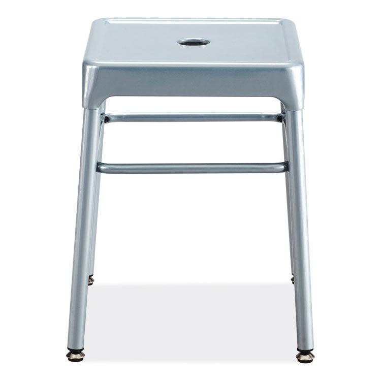 The Safco® Steel Guest Stool is a sturdy, all steel stool that is great for use in a variety of spaces. The guest-height stool is perfectly suited for use in breakrooms, open floor plans, personal workspaces, lobbies and more. The easy-to-clean powder coat finish is durable and chip-resistant for a long-lasting seating option. These stools include choice of nylon leg caps or leveling glides to protect floors from scratches or scuffs. The hole in the top of the seat allows the chair to be easily grabbed and carried to allow for portability between spaces. Recommended Application Area(s): Breakroom & Foodservice; Seat Color: Silver; Color Family: Silver; Arms Included: No.
