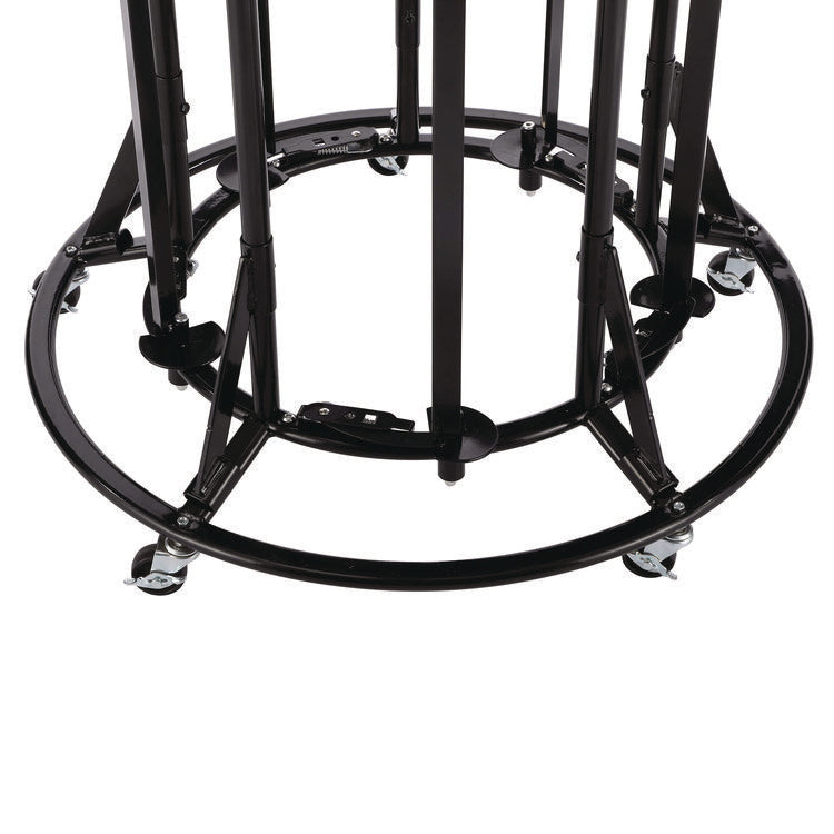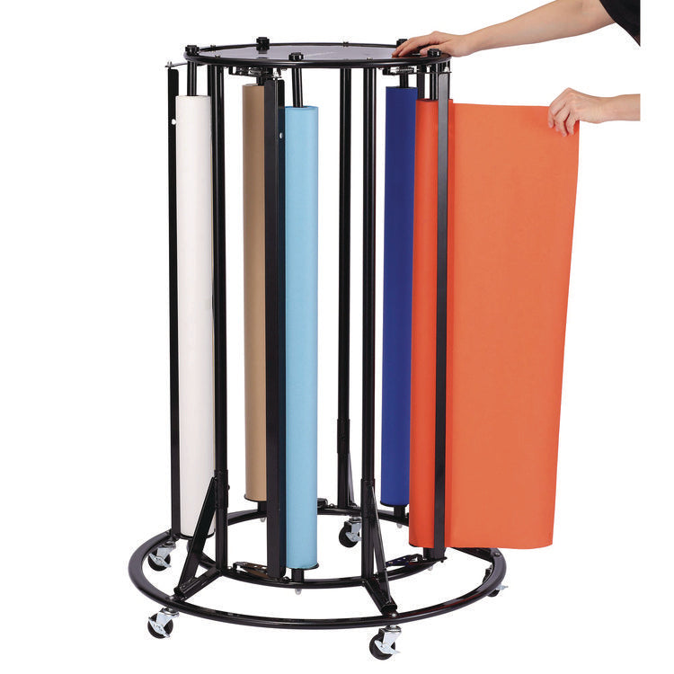 Something as simple as paper is vital for the development of your children and your classroom, but it can be bulky and hard to allocate space. Our sturdy, easy gliding five roll, paper roll dispenser has solved this problem. Typically, it's challenging to find a flat, long surface for one paper roll dispenser. But, with our vertical, five-roll dispenser, you get five times the paper roll capabilities, allowing for various colors, and it will not require a table. With a capacity of five 36" paper rolls, your home, classroom, or workspace will always be well stocked. This dispenser is specifically designed to diminish the amount of replenishment needed. Depending on usage rates, the paper can last you weeks, if not months. Additionally, you will no longer have to lift a heavy dispenser to make room for projects or supplies. With five 2" locking caster wheels, caregivers and teachers can easily maneuver it wherever and whenever transporting it from classroom to classroom in a breeze. It's a great problem solver for in-home use as you won't have to dedicate a permanent space for it and can manipulate where it goes. If you own a gift shop or a food service facility, you can utilize our dispenser for gift wrapping and butcher paper to save space and streamline your wrapping process. What makes our paper roll dispenser unique is how accommodating it is. It can be rolled and stored away if you have a small area and need the extra space or aren't using the dispenser. The vertical design makes it straightforward to see when your inventory is running low. To help make installation less cumbersome, we've engineered our paper roll rod to be lightweight and compact so you can remove it, insert your paper roll, reinstall it, and be on your way. Our blades for cutting your paper are not serrated, and the V-shaped blades do not jut out; instead, it makes direct contact with the paper roll. For ASMR lovers, enjoy the sound and feel of your paper, cleanly ripping from the non-serrated blade and delivering a perfectly straight line. Dispenser Width: 31.5"; Dispenser Depth: 31.5"; Dispenser Height: 46.1"; Dispenser Color: Black.