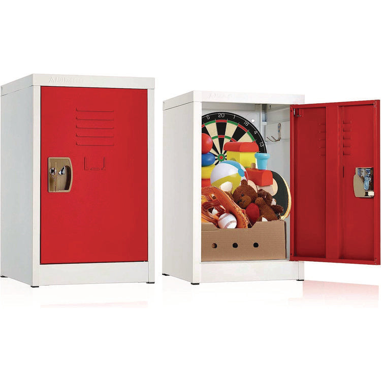 The minimalist design of our lockers makes them suitable for a wide range of spaces. Each is accompanied by coat and bag hooks which make the organization more accessible than ever, encouraging children to be responsible and independent. Additionally, the vented doors ensure proper air circulation, keeping your child's belongings fresh and dry. As a bonus, adorned on every door are metal name plates that are great for locker assignments or personalization as you see fit. Color(s): Red; Overall Width: 15"; Overall Depth: 15"; Overall Height: 24".