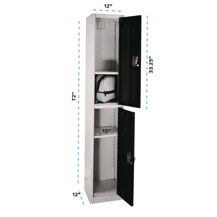 Steel Storage Locker, 2 Compartment, 12 x 12 x 72, Black
