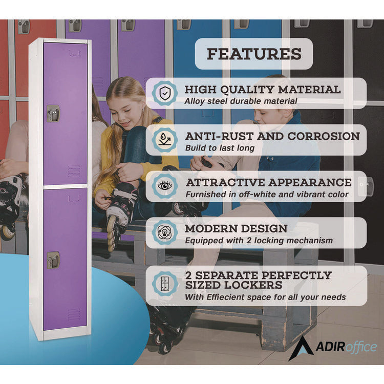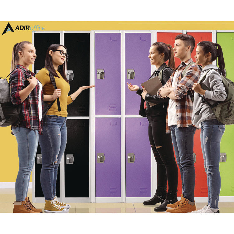 The minimalist design of our lockers makes them suitable for a wide range of spaces. Each is accompanied by coat and bag hooks which make the organization more accessible than ever, encouraging children to be responsible and independent. Additionally, the vented doors ensure proper air circulation, keeping your child's belongings fresh and dry. As a bonus, adorned on every door are metal name plates that are great for locker assignments or personalization as you see fit. Color(s): Purple; Overall Width: 12"; Overall Depth: 12"; Overall Height: 72".