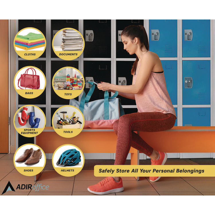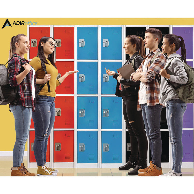 The minimalist design of our lockers makes them suitable for a wide range of spaces. Each is accompanied by coat and bag hooks which make the organization more accessible than ever, encouraging children to be responsible and independent. Additionally, the vented doors ensure proper air circulation, keeping your child's belongings fresh and dry. As a bonus, adorned on every door are metal name plates that are great for locker assignments or personalization as you see fit. Color(s): Blue; Overall Width: 12"; Overall Depth: 12"; Overall Height: 72".
