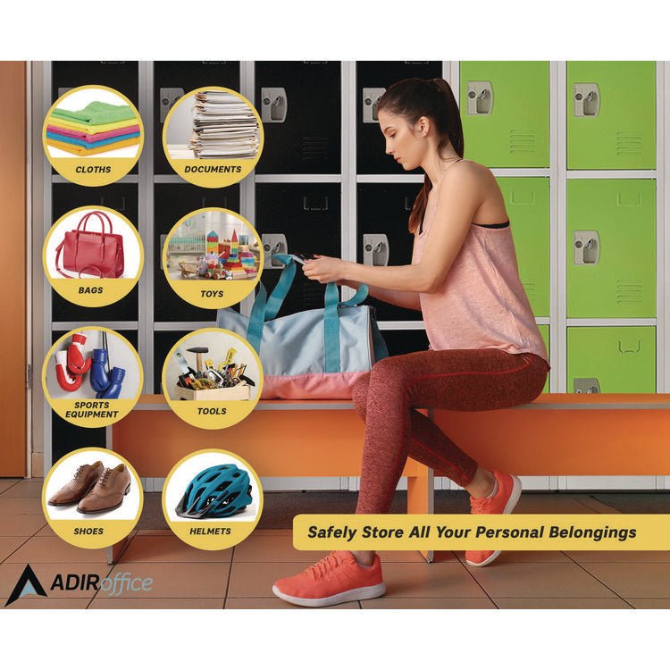 The minimalist design of our lockers makes them suitable for a wide range of spaces. Each is accompanied by coat and bag hooks which make the organization more accessible than ever, encouraging children to be responsible and independent. Additionally, the vented doors ensure proper air circulation, keeping your child's belongings fresh and dry. As a bonus, adorned on every door are metal name plates that are great for locker assignments or personalization as you see fit. Color(s): Green; Overall Width: 12"; Overall Depth: 12"; Overall Height: 72".