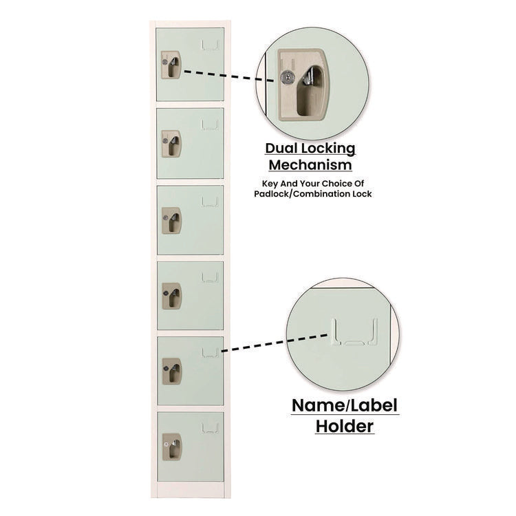 Steel Storage Locker, 6 Compartment, 12 x 12 x 72, Misty Green