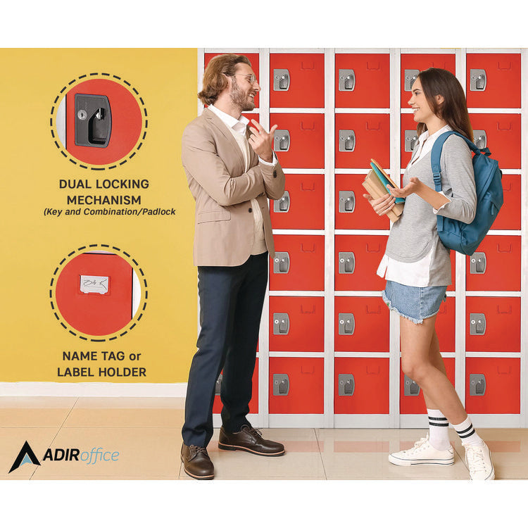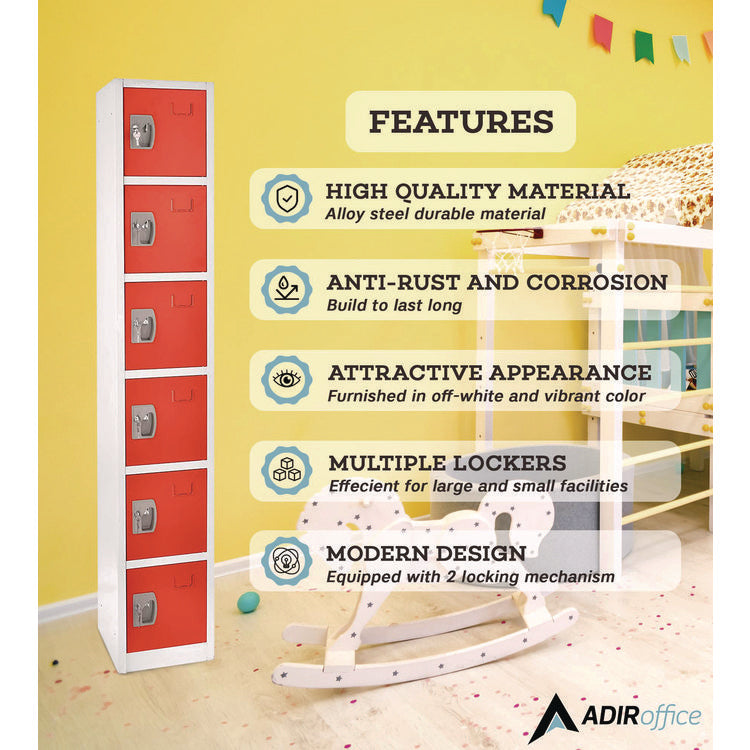 The minimalist design of our lockers makes them suitable for a wide range of spaces. Each is accompanied by coat and bag hooks which make the organization more accessible than ever, encouraging children to be responsible and independent. Additionally, the vented doors ensure proper air circulation, keeping your child's belongings fresh and dry. As a bonus, adorned on every door are metal name plates that are great for locker assignments or personalization as you see fit. Color(s): Red; Overall Width: 12"; Overall Depth: 12"; Overall Height: 72".
