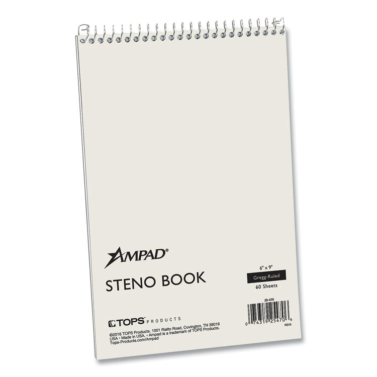Ampad® Steno Books are ideal for everyday use at home, school or office. The classic flip-top format long preferred by stenographers and reporters gives quick access to notes and lists. A no-snag coil resists catching on papers or clothing. Perforated sheets detach easily. Pocket-Sized Indicator: Y; Pad-Binding Type: Spiral Coil; Pad-Binding Details: WireLock® Coil-Locked: Soft Cover; Pad-Binding Edge: Top.