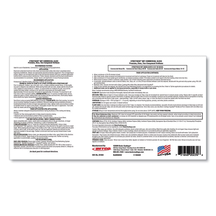 StreetShoe NXT is the fastest curing finish on the market today and an industry benchmark for waterbased finishes. StreetShoe NXT provides a clear finish that is unmatched in performance and durability. It also contains UV inhibitors to protect against harmful rays from the sun. Application: Floor Finish; Applicable Material: Wood Floors; Chemical Compound: Acrylic Polymer; Scent: Mild.