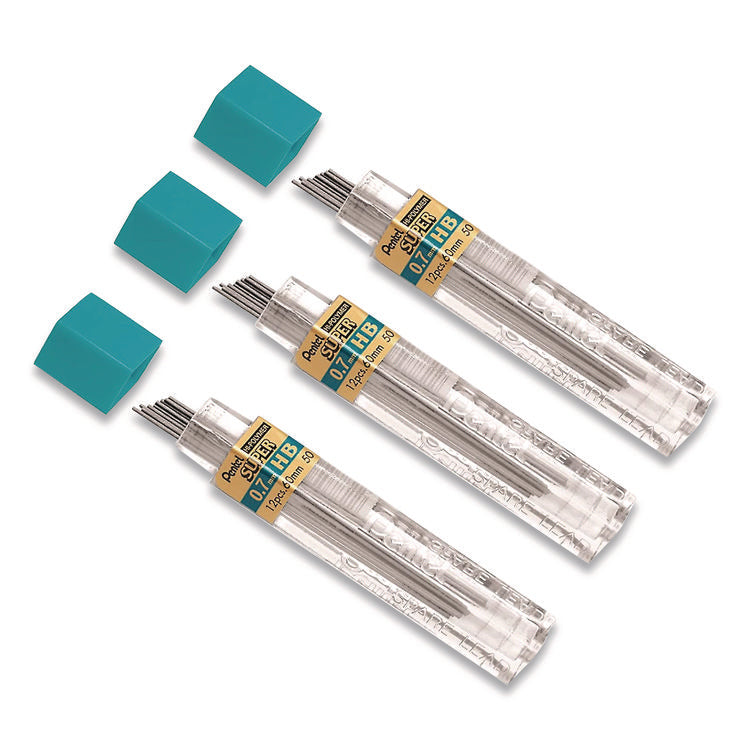Smooth and super-strong, Super Hi-Polymer® Lead's proprietary formula delivers superior-quality marking with reduced smearing and excellent break resistance. Always producing crisp, clear lines with excellent consistency, this lead is ideal for all applications—arithmetic and equations, drawing and drafting, template work and more. Universal compatibility also makes Super Hi-Polymer® Lead Refills suitable for just about any mechanical pencil requiring the chosen diameter, and the HB lead refills are a direct equivalent to a #2 pencil—guaranteed to scan accurately on tests and documents. Pencil Lead Format: Tube; Lead Diameter: 0.7 mm; Lead Degree (Hardness): HB; Lead Color: Black.