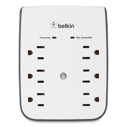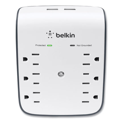 Mounts directly over any existing wall outlet to give you six additional AC outlets. Two powered USB ports provide convenient one-source charging for mobile devices, including smartphones and tablets. Features oversized metal oxide varisotors (MOVs) to absorb excess electricity. Damage-resistant housing protects circuits from fire, impact, and rust while also preventing dents and scratches. "Protected" indicator light turns green to let you know your equipment is secure. Number of Outlets: 6 AC; 2 USB; Joules Of Surge Protection: 900 J; Protection Type: Laptop; Computer; Connected Equipment Guarantee/Warranty: $25,000 Limited.