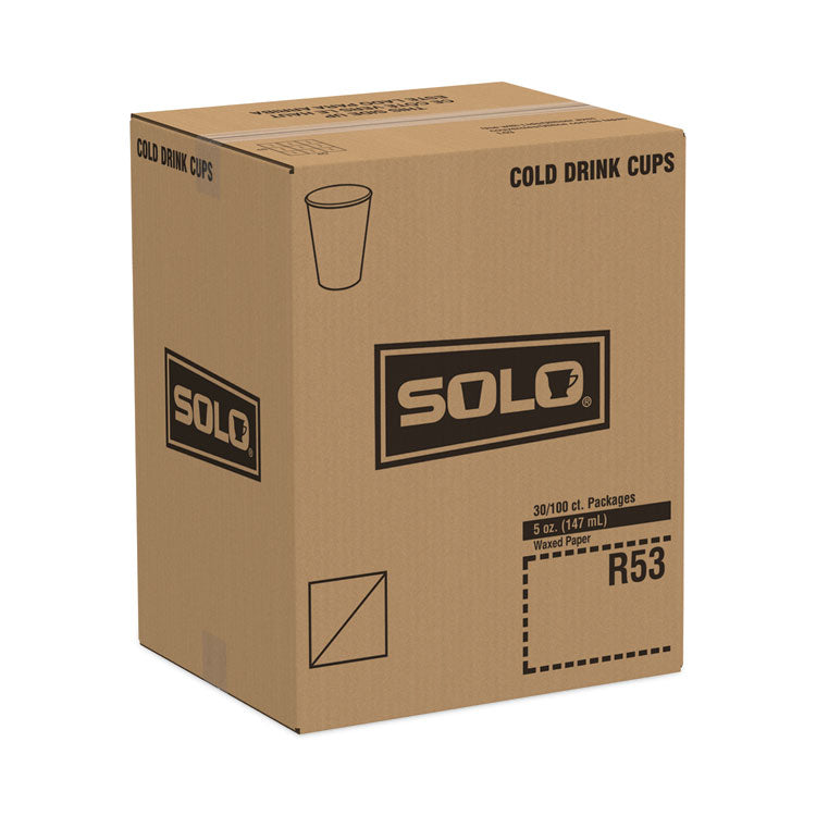 Waxed paper cups with a multi-colored curved lines design. ProPlanet SealThis product earns Dart's ProPlanet Seal because it meets ASTM requirements for commercial compostability. Cup Type: Water Cup; Interior Volume Capacity: 5 oz; Material(s): Wax-Coated Paper; Material Type: Paper.