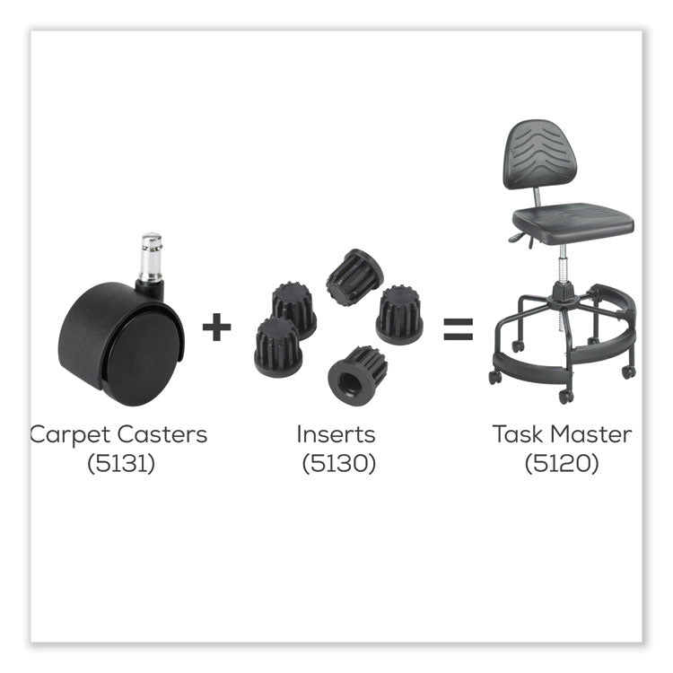 The 2 carpet casters are chair accessories designed for Task Master® Seating. Caster/Glide/Wheel: Caster; Color(s): Black; Color Family: Black; Weight Capacity: 250 lb (50 lb Per Caster).