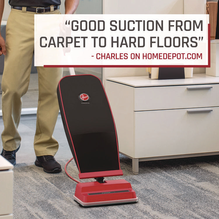 Lightweight commercial vacuum with a durable outer bag. Weighs under 10 lbs and features a fingertip on/off switch, non-marking furniture guard and convenient carry handle. No tools for assembly. Current: 4 A; Voltage: 120 V; Color(s): Black/Red; Cleaning Path: 12".