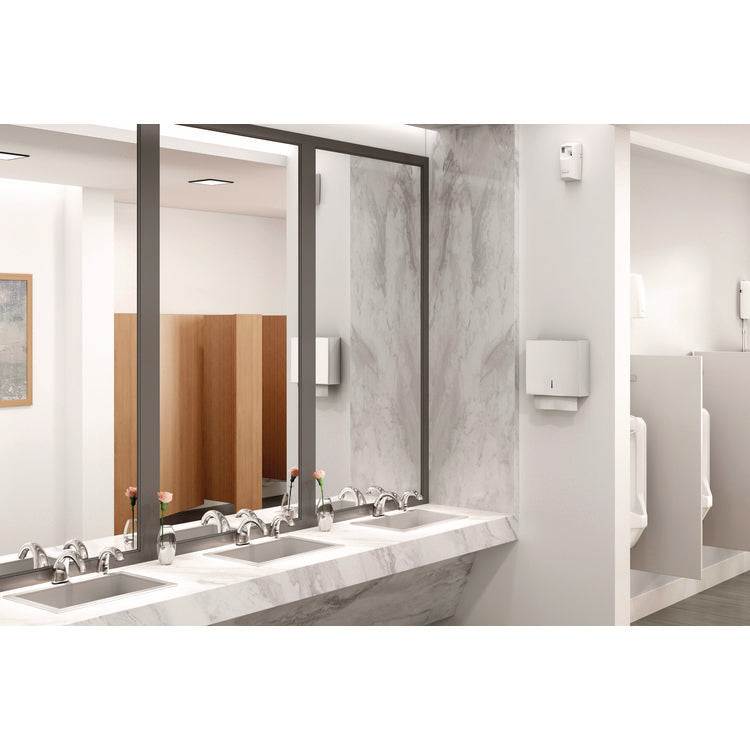 Rubbermaid Commercial Products Microburst delivers air freshener with Microtrans Odor Neutralizer to eliminate odors. Pharmaceutical-grade steel valve distributes a diverse selection of high quality fragrances in a fine mist to terminate washroom odors. Ready-to-use out of the box, it features smart chip technology for maximum odor control from 30 to 168 days with flexible programming options. With a "Days to Refill" indicator to remind staff when needed refills are approaching. Microburst® 9000 LCD. Material(s): Plastic; Color(s): White; Height: 8.75"; Width: 3.6".