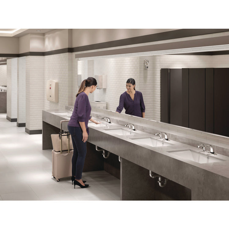 Smart Sensor™ technology provides fail-safe hand detection. Touch-free system helps prevent the spread of germs and bacteria. Controlled-volume dispensing minimizes waste and over use. Reliable, low-maintenance unit delivers clog- and leak-resistant operation. Operates on four D batteries (sold separately). Soap Dispensers Type: For Liquids; Interior Volume Capacity: 1,600 mL; Mounting: Counter; Color(s): Polished Chrome/Black.