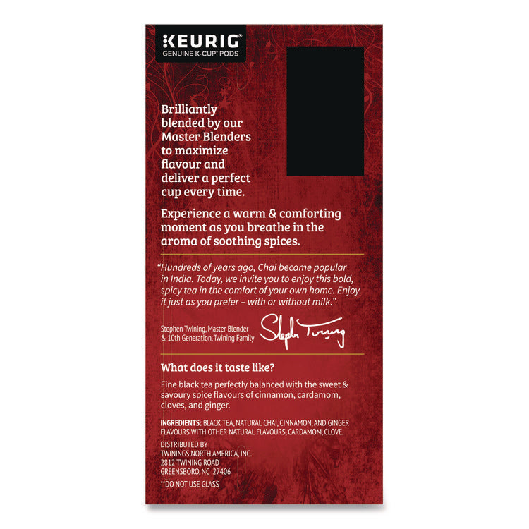 Tea K-Cups, Chai, 0.12 oz, 24/Box