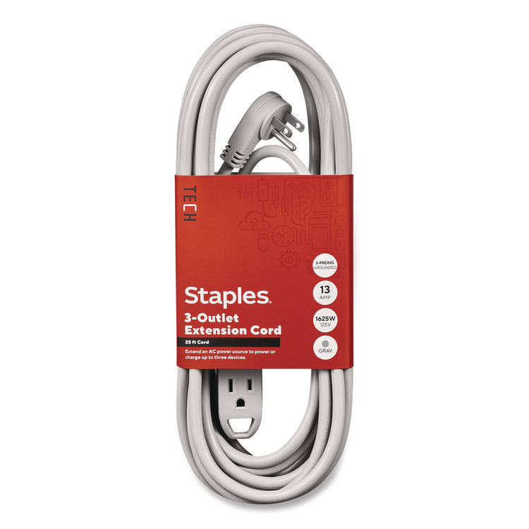 TECH 25 ft Extension Cord, 25 ft, 13 A, Gray, 2/Pack