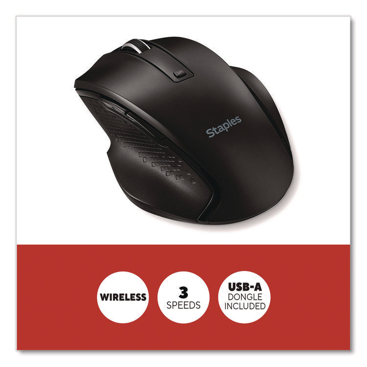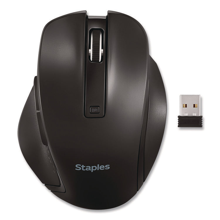TECH Wireless Ergonomic Curved Optical USB Mouse, 2.4 GHz Frequency/33 ft Wireless Range, Left/Right Hand Use, Black