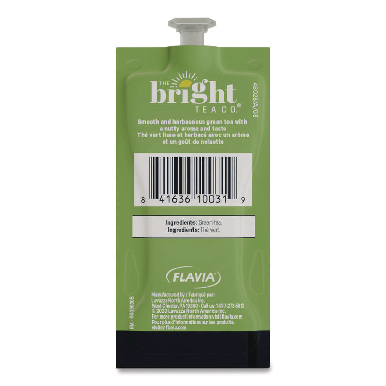 The Bright Tea Co.® Select Green Tea is a smooth and creamy tea with a nutty aroma and taste, balanced bite and sweetness. Our brewing process, where nothing touches the ingredients other than hot water, ensures your drink does not taste like previous brews. Compatible with FLAVIA® single-serve brewers. For single-serve sustainability, innovative pouches are 100 percent recyclable through Terracycle. Beverage Type: Tea; Flavor: Select Green; Product Packaging: Pouch; Capacity (Weight): 0.09 oz.