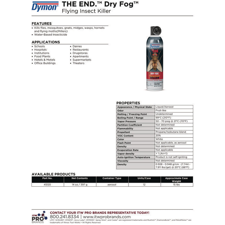 The End. Dry Fog Flying Insect Killer, 14 oz Aerosol Spray, 12/Carton