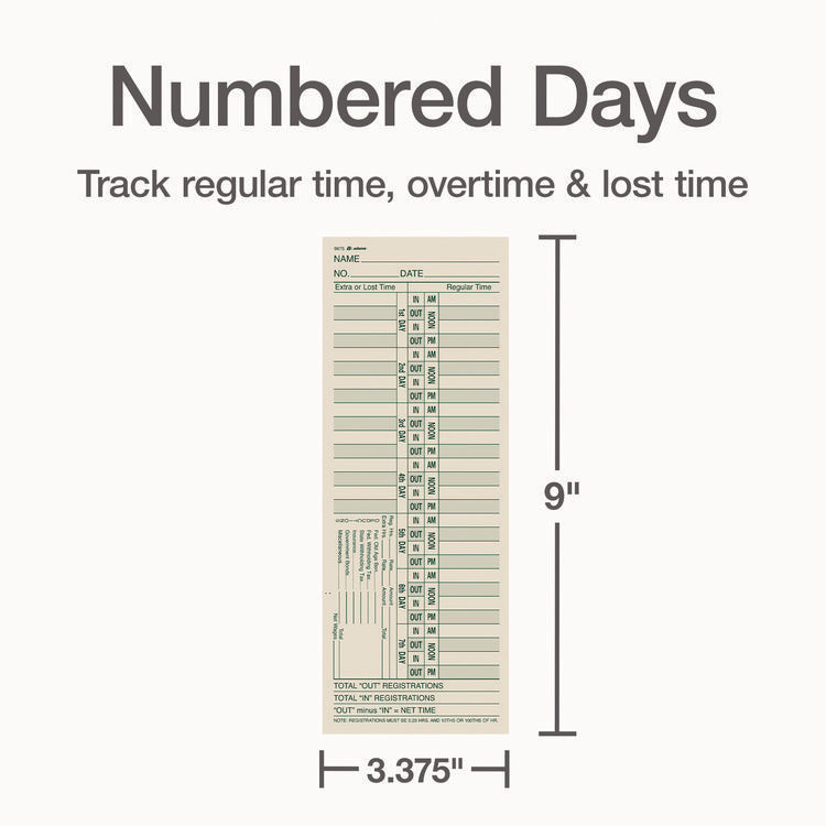 Time Cards for Acroprint, Amano and Lathem Time Clocks, Two Sides, Bi-Weekly, 3.38" x 9", 200/Pack