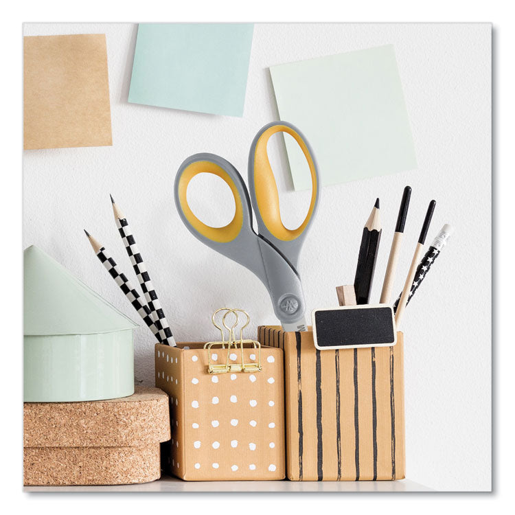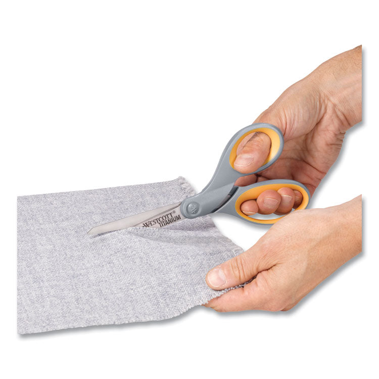 Titanium Bonded Scissors, 8" Long, 3.5" Cut Length, Straight Gray/Yellow Handle, 2/Pack