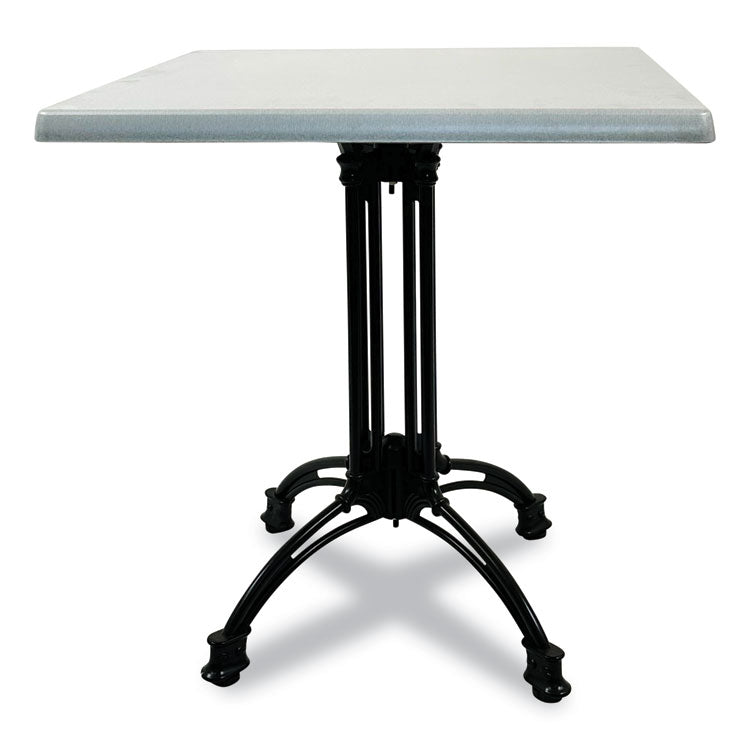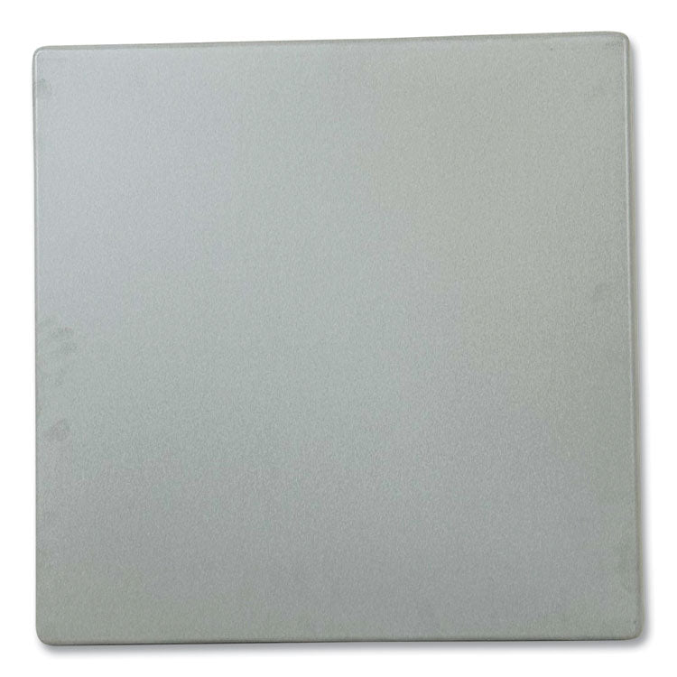 Our topalit tables are produced using responsible manufacturing practices. When you choose our tables, you're not just investing in your restaurant; you're making a sustainable choice for our planet. Table tops are weather-, UV- and scratch-resistant. They are also -heat resistant up to 356°F and tough against temperature fluctuations. Tops are unbreakable and impact resistant, capable of standing up to the roughest of treatments and making these tables the perfect choice for outdoor dining. Top Color: Silver; Color Family: Silver; Base Color: Black; Top Shape: Square.