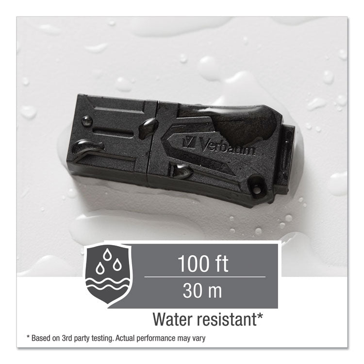 Water-resistant, crush-resistant and temperature-resistant, this USB flash drive protects against rough-and-tumble use for a variety of lifestyles. Proprietary material increases durability without adding weight, creating a uniquely tough USB drive in a slim, stylish design. Optional password protection software makes this drive as tough inside as it is outside, storing data safely and securely. Connector/Port/Interface: USB 2.0; Storage Capacity: 32 GB; Weight: 0.02 oz; Operating System Compatibility: Windows®.