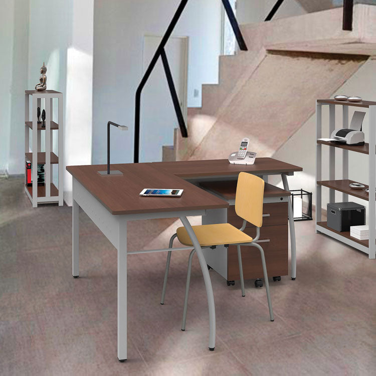 Stylish minimalist design for universal appeal. Scratch- and stain-resistant woodgrain laminate with durable edge. Adjustable leveling glides for stability. Quick and easy assembly in minutes. Strong powder coated steel frame with laminate shelves. Four shelves. Color(s): Cherry; Color Family: Cherry; Material(s): Woodgrain Laminate; Number of Shelves: 3.