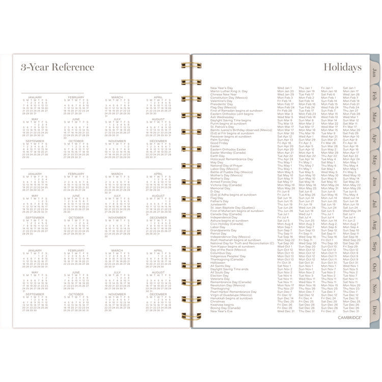 Express a bold sense of style this year. The Triad Weekly/Monthly Planner's cover artwork brings strong geometric designs, an attractive color palette and gold accents to the fore; and whether you're planning day-to-day tasks or chasing your long-term goals, this planner can help you do it all. Start fresh each week. Weekly spreads feature daily sections for staying on track Monday through Sunday and a separate QuickNotes® area for anything extra. See how much you can accomplish in one month! Tabbed monthly spreads help you see your big picture plans in an instant. Who doesn't love extras? Special features include planning pages, note-taking pages, reference calendars and more. Additionally, a sheet of labeling stickers makes it easy to draw extra attention to what's important, while a two-sided storage pocket helps you carry any important loose materials. Create a lasting relationship with your planner. The durable poly cover stands up to wear and tear no matter where your day takes you. Keep it all together. Snag-free twin-wire binding keeps your pages secure. Dated/Undated: Dated; Calendar Format: Weekly; Monthly; Calendar Spread Format: One Week per Two-Page Spread; One Month per Two-Page Spread; Edition Year: 2025.