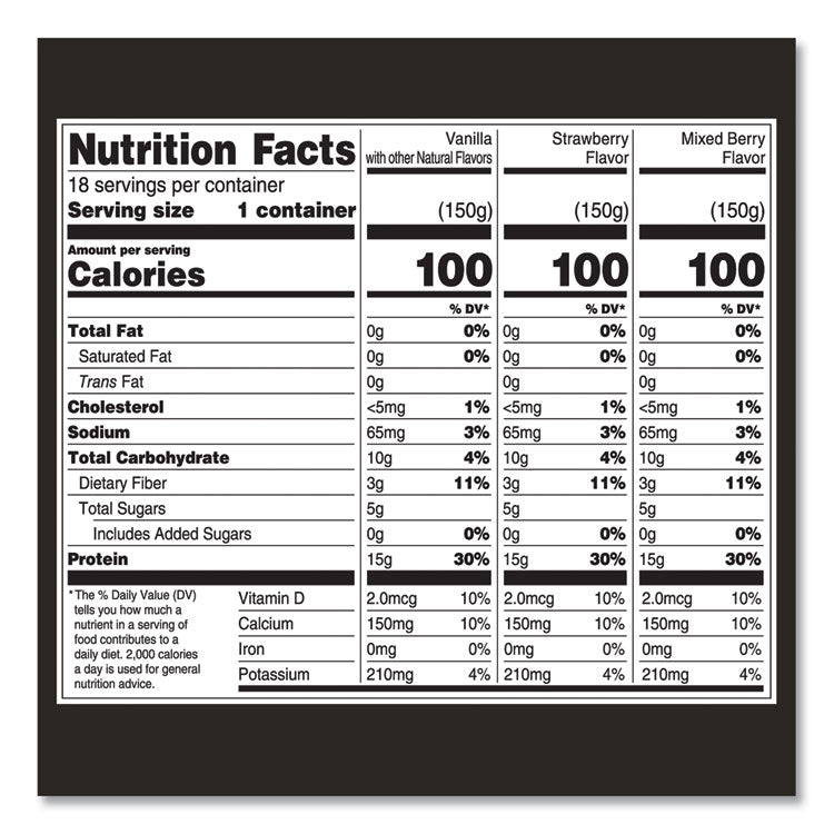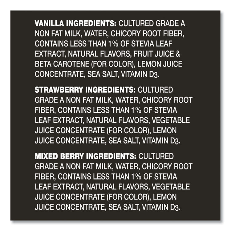 Triple Zero Blended Greek Nonfat Yogurt, 5.3 oz, Strawberry/Mixed Berry/Vanilla, 18/Carton
