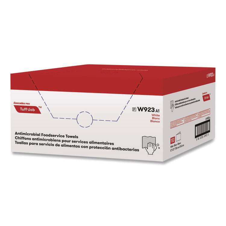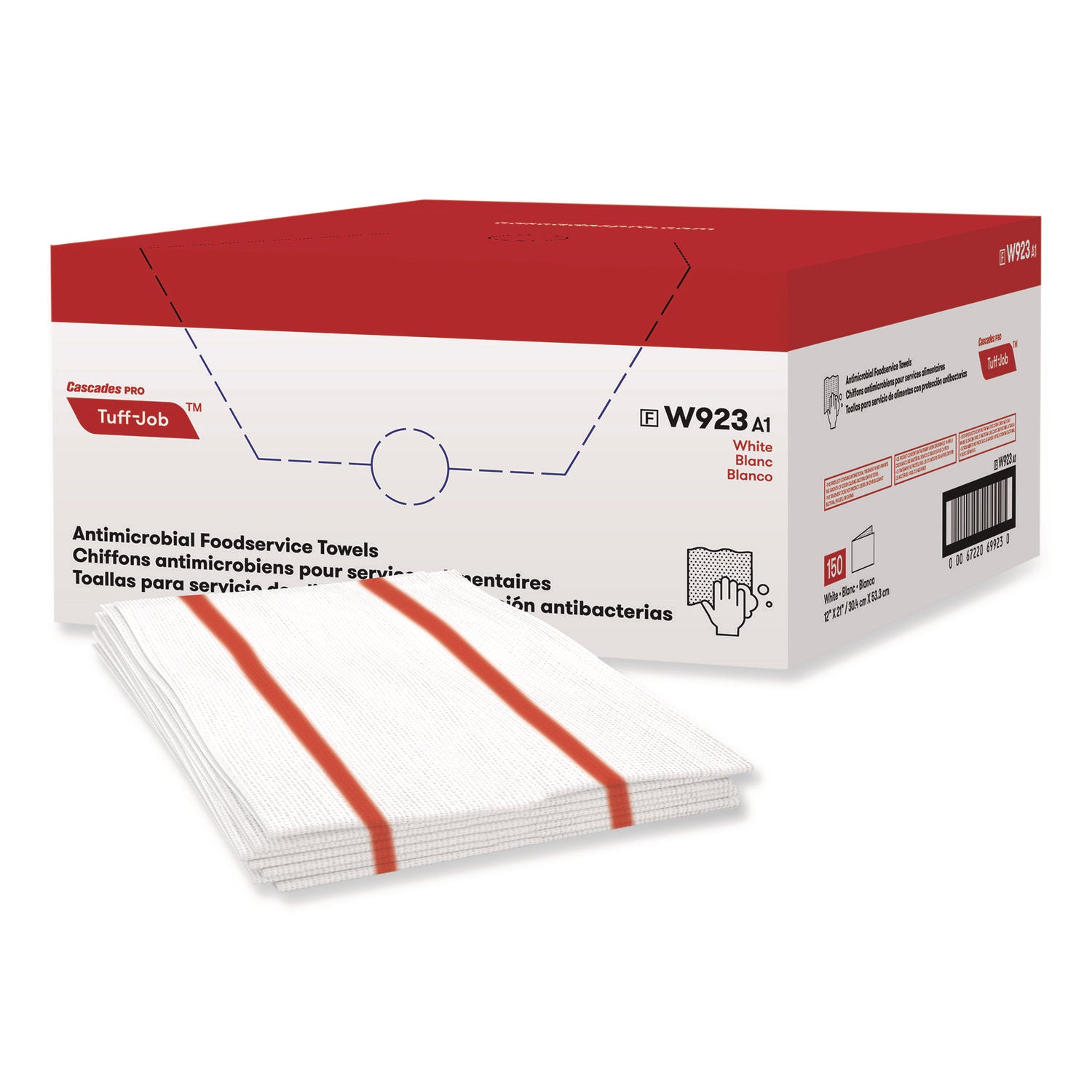 Antimicrobial Foodservice Towels, meticulously engineered for unparalleled strength, durability, and absorbency, whether used wet or dry. With integrated antimicrobial protection, these towels inhibit the growth of odor-causing bacteria within the fabric, ensuring they stay fresh and clean for extended use. Designed to deliver superior cleaning performance, even with harsh sanitizers or disinfecting solutions, these towels are easy to rinse clean and boast fast-drying properties for a long-lasting product. Dispenser Case. Towel/Wipe Type: Washable Cleaning Cloth; Application: Cleaning; Foodservice; Material(s): Rayon/Polyester; Number of Plies: 1.