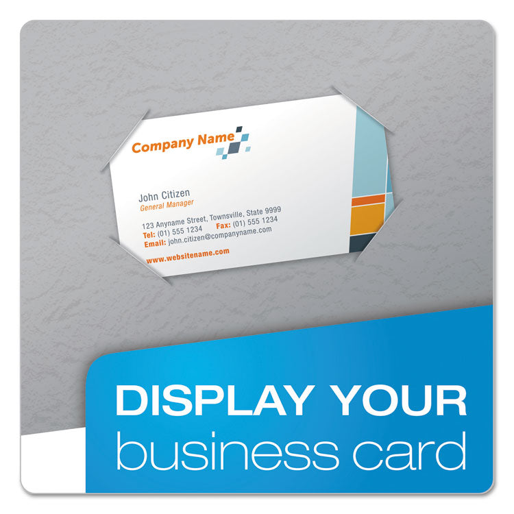 Report portfolios let you keep loose papers with fastened report. Leatherette-grained stock for a rich feel. Business card slot on inside front pocket. Holds up to 135 sheets of paper. Front Cover Color(s): Gray; Color Family: Gray; Back Cover Color(s): Gray; Sheet Size: 11 x 8.5.