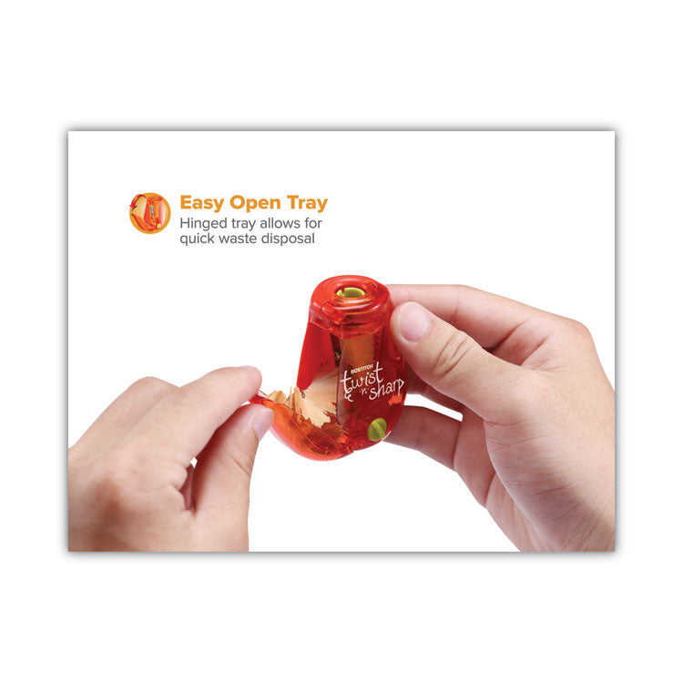 Twist-N-Sharp Pencil Sharpener, One-Hole, 3.5 X 1.25 X 5.5, Assorted Colors, 3/box