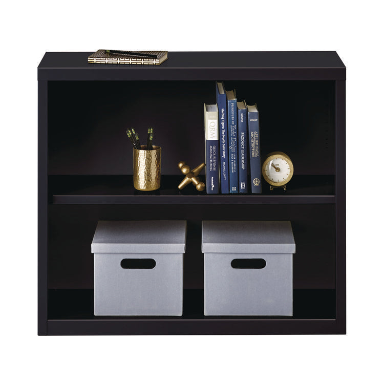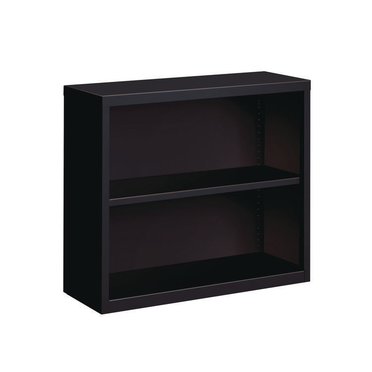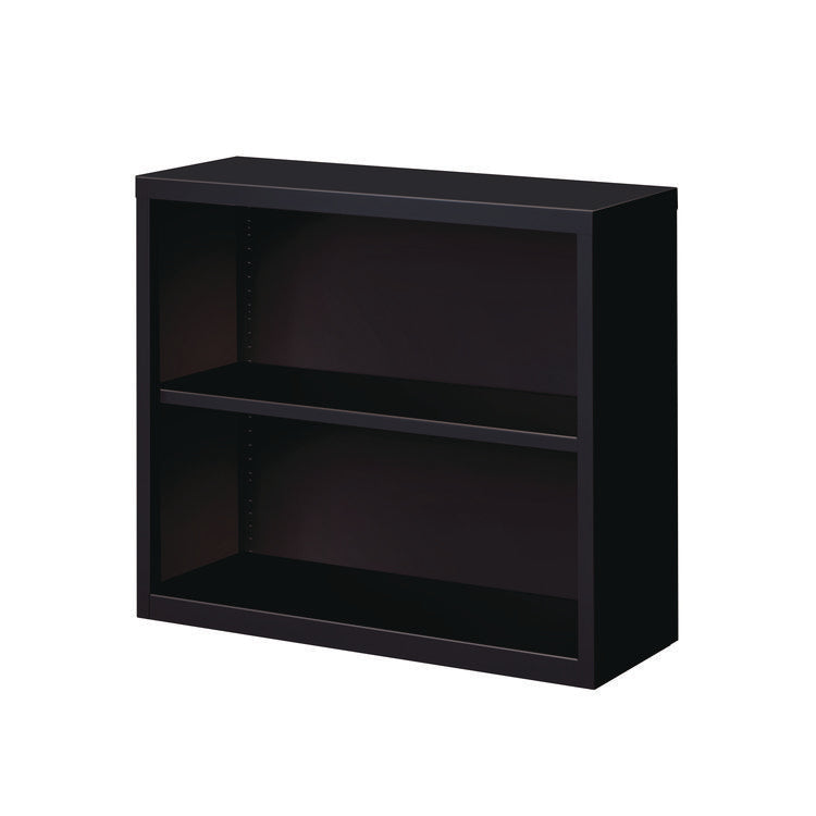 Make a statement with Alera® Two-Shelf Metal Bookcases. Featuring durable, fully welded steel construction and attractive, easy to clean, baked-enamel non-porous surfaces, these bookcases are perfect for your home, office, school and library needs. Providing smart and stylish organization, the middle shelf is adjustable in one-inch increments to accommodate the books and materials you wish to keep close, and the fixed bottom shelf helps ensure solid stability. Create the perfect shelf space to meet your needs while you keep clutter at bay. Color(s): Black; Color Family: Black; Material(s): Steel; Number of Shelves: 2.