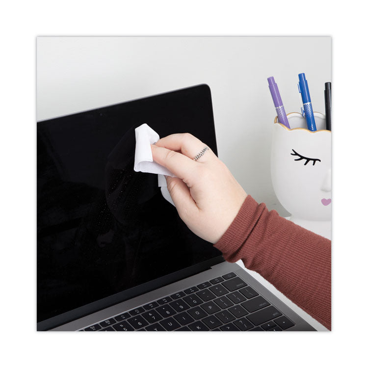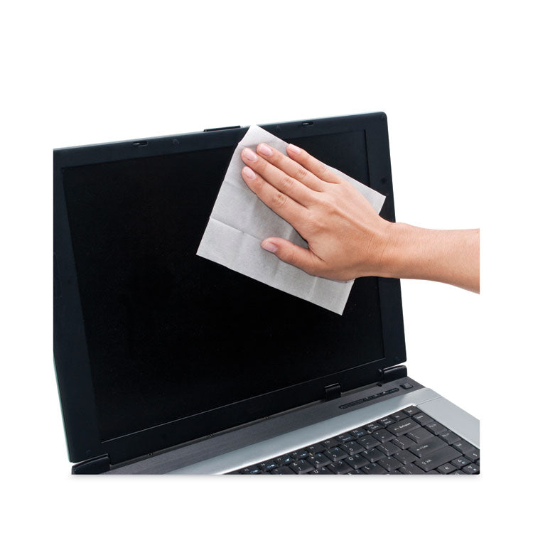 Heavily saturated wet wipe neutralizes static and removes dust, dirt and oil. Strong, dry, absorbent cloth dries and polishes screen to streak-free clarity. Ideal for large or heavily soiled computer and display screens, TVs and more. Not for use on nylon mesh/polarized antiglare screens. Twin Packs—40 individually wrapped twin packs per box hold one premoistened wipe and one dry wipe. Towel/Wipe Type: Screen Wipes; Application: Micrographics Screen; TV; Applicable Material: Glass; Plastic; Vinyl; Material(s): Cloth.