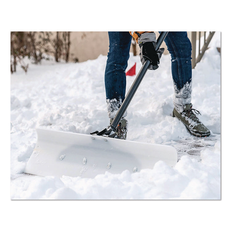 Help dig out your property from rough winter weather with the Suncast® UHMW Snow Pusher. This durable snow pusher features a Steel Core® shaft encased with a resin covering which combines the strength and longevity of steel for maximum snow pushing power with minimal effort. The Centerforce® handle transfers the increased pushing power from the handle to the blade. The non-stick surface allows snow to easily slide off blade making it easy to tackle your snow removal needs. Series Name: Steel Core®; Lawn and Garden Tool Type: Pusher; Garden Tool Style: Snow Pusher; Tool Application: Snow Removal.