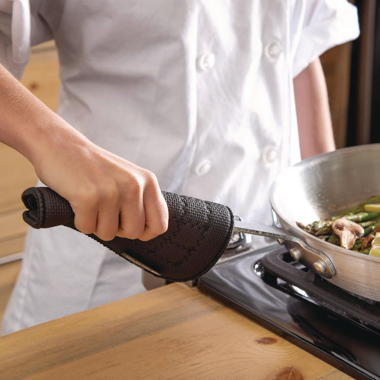 Never drop a hot pan again with the excellent Ultigrip Hot Pad. It has versatile performance with a quilted design and offers heat protection up to 500° F for 15 seconds. Non-slip grip with a textured neoprene material provides superior grip in extreme temperatures ideal for use with heavy pans. Material(s): Neoprene; Color(s): Black; Length: 11.5".