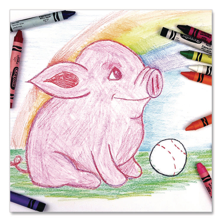 Perfect for school and at-home crafts, these Ultra Clean Washable Crayons are designed with both creativity and convenience in mind. Featuring vibrant colors that children love, these crayons deliver smooth, bold results for all their art projects. The Ultra Clean formula ensures that each vivid hue washes easily from skin, painted walls, and most washable clothing, making cleanup a breeze for parents and teachers alike. Durable and long-lasting, these quality crayons are perfect for classrooms, homework, and creative play. Add them to your back-to-school list and enjoy worry-free coloring without stains or mess—just pure, colorful fun for kids of all ages! Color(s): Assorted; Color Family: Multicolor; Color Assortment: 16 Assorted Colors; Size Group: Large.