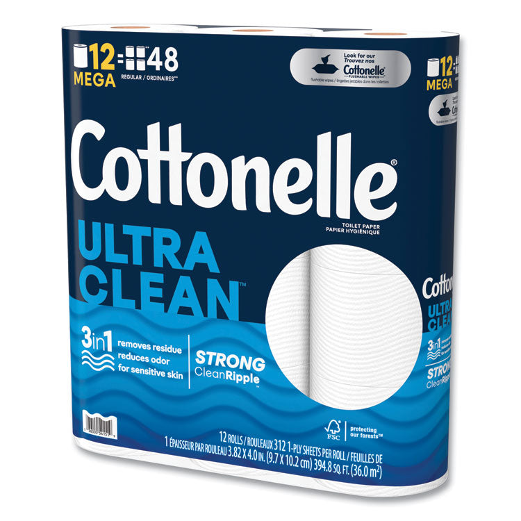 Ultra CleanCare Toilet Paper, Strong Tissue, Mega Rolls, Septic Safe, 1-Ply, White, 284/Roll, 12 Rolls/Pack, 48 Rolls/Carton