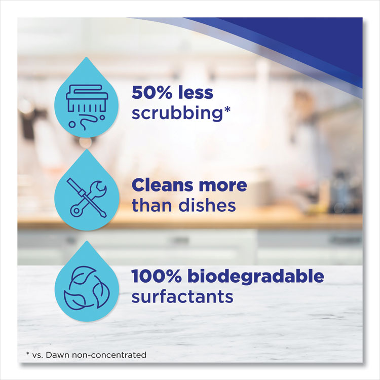 Cleaning tough food residue and grease made easy with Dawn® Ultra Liquid Dish Detergent. Leaves dishes sparkling clean. Gentle, pleasant scent. Application: Dishes; Applicable Material: Ceramic; Glass; Metal; Plastic; Stainless Steel; Chemical Compound: Alcohol Denat; C10-16 Alkyldimethylamine Oxide; C9-11 Pareth-8; Colorants; Deceth-8; Fragrances; Methylisothiazolinone; Pei-14 PEG-24/PPG-16 Copolymer, Phenoxyethanol; PPG-26, Sodium Chloride; Sodium Lauryl Sulfate; Water; Dirt Types: Cooked-On Grease; Dirt; Food Particles; Organic Matter.