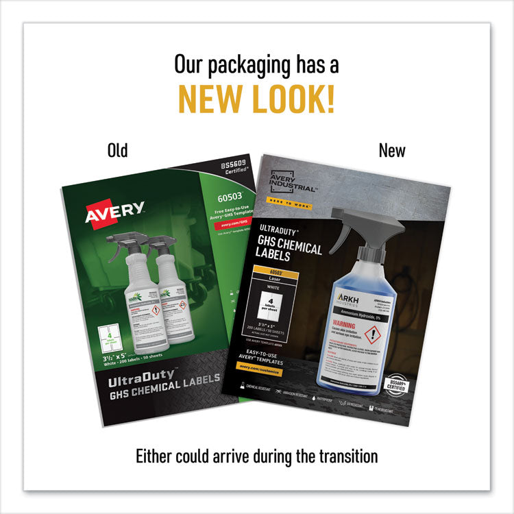 Ultraduty Ghs Chemical Waterproof And Uv Resistant Labels, 3.5 X 5, White, 4/sheet, 50 Sheets/box
