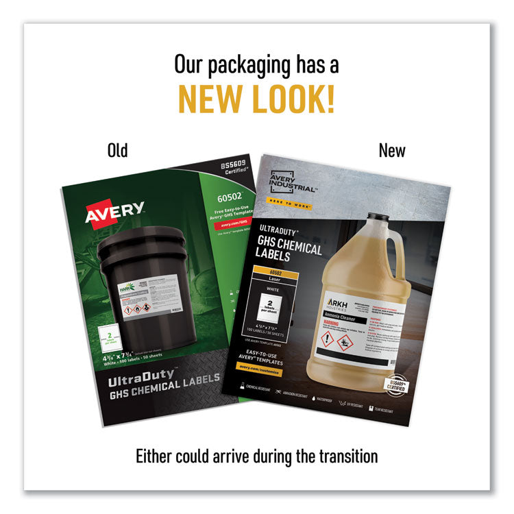 Ultraduty Ghs Chemical Waterproof And Uv Resistant Labels, 4.75 X 7.75, White, 2/sheet, 50 Sheets/box