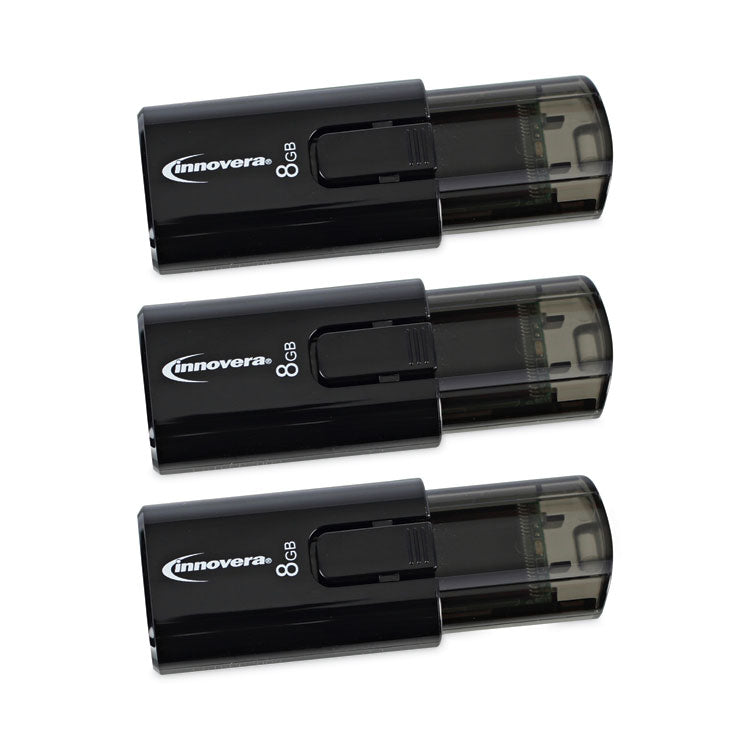 Innovera® USB 3.0 Flash Drive is an ultra-fast drive with a no-loss, retractable cap. USB flash drives are a convenient and secure way to move and store your digital files. Simple plug-and-play design. Great for sharing photos, presentations, files and documents. Great on-the-go flash drives that are perfect for packing in a laptop bag, briefcase, purse, or backpack for easy transfer of files from one computer to another. Compatible with all standard USB ports. Connector/Port/Interface: USB 3.0; Storage Capacity: 8 GB; Drive Write Speed: 20 MBps; Reading Speed: 20 MBps.