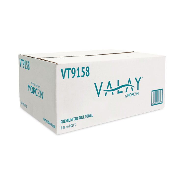 Valay Universal TAD Roll Towels, 1-Ply, 8 x 600 ft, White, 6 Rolls/Carton