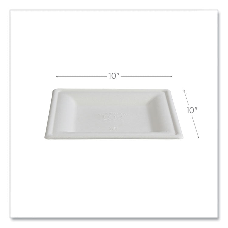 Vanguard Renewable and Compostable Sugarcane Plates, 10 x 10, White, 250/Carton