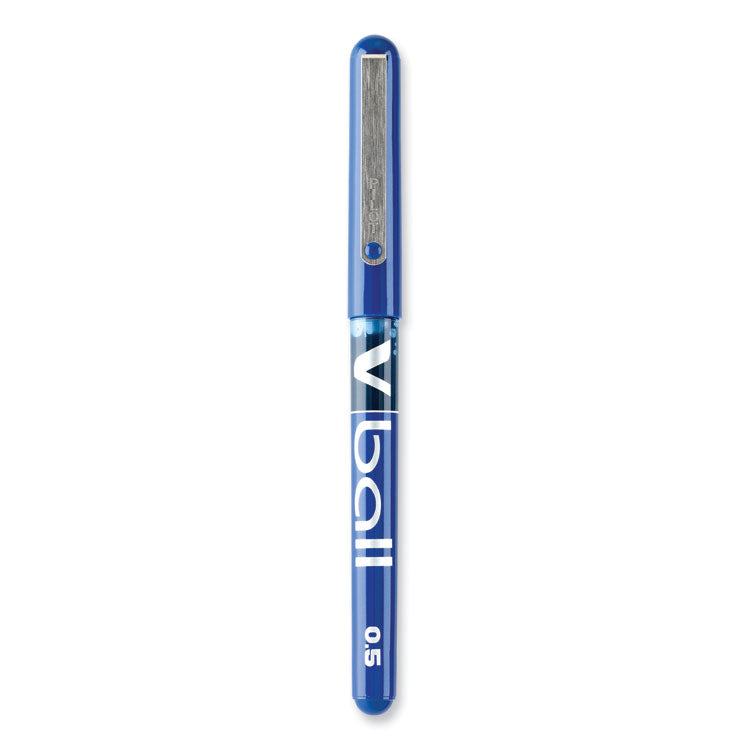 VBall Liquid Ink Rollerball Pen, Stick, Extra-Fine 0.5 mm, Blue Ink, Blue/Clear Barrel, Dozen