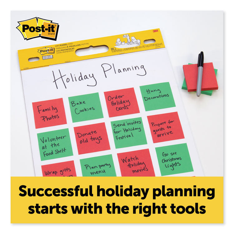 Use Post-it Easel Pads to capture and share ideas. With sheets that can stick almost anywhere, Post-it Easel Pads foster the imaginative thinking that lays the foundation for future growth. So when you want to successfully plan, collaborate, and capture and build on ideas, they're ready to help you succeed. Post-it Easel Pad sheets feature premium paper that resists marker bleed-through; they stick to most surfaces and can be repositioned again and again, without surface damage. The sturdy backcard features a handle for easy portability and universal slots to fit most easel stands. Vertical-Orientation. Pocket-Sized Indicator: N; Pad-Binding Type: Stapled; Pad-Binding Edge: Top; Number of Subjects/Sections: 1.